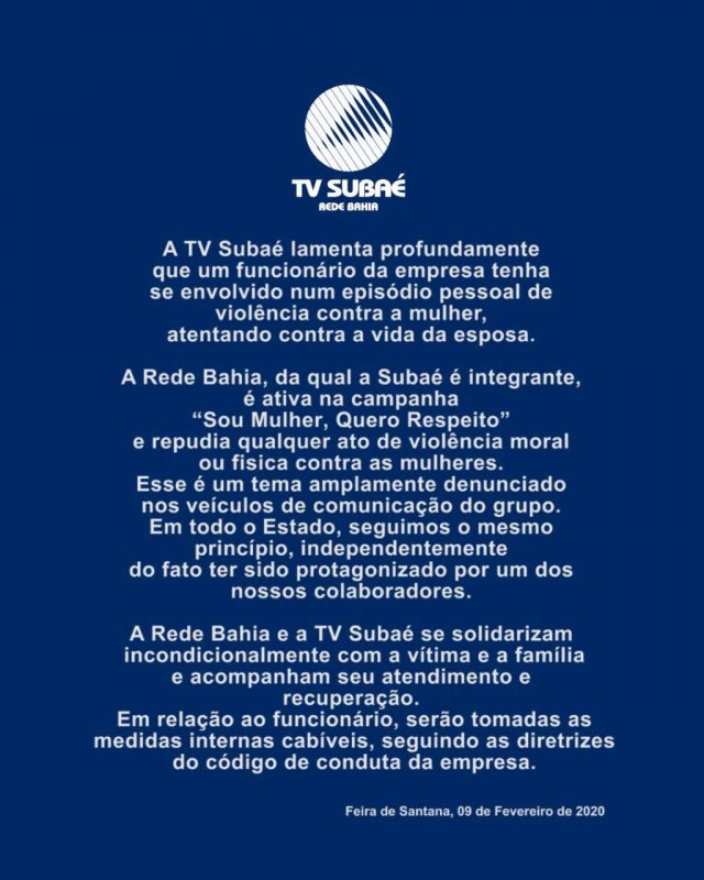O Acorda Cidade ouviu, na tarde deste domingo (9), o irmão de Elisângela Santos Oliveira Conceição que sofreu uma tentativa de feminicídio na noite sábado (8) no apartamento onde mora, localizado no condomínio Parque Viver Stylo, no bairro Conceição, em Feira de Santana. Ela foi ferida com vários golpes de faca e o esposo dela, Jeremias Souza da Conceição, é acusado do crime. Jeremias é operador de vídeo e motorista da TV Subaé, afiliada a Rede Bahia, e a empresa emitiu uma nota repudiando o crime.