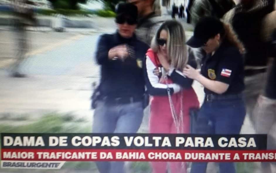 A transferência de Jasiane Silva Teixeira, ‘Dona Maria’, a Dama de Copas do Baralho da SSP da Bahia, foi destaque nos principais meios de comunicação do país. Na Bandeirantes, no programa Brasil Urgente, o apresentador José Luís Datena destacou que o choro da traficante, aparentemente frágil, escondia a natureza criminosa.