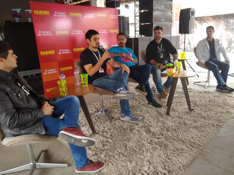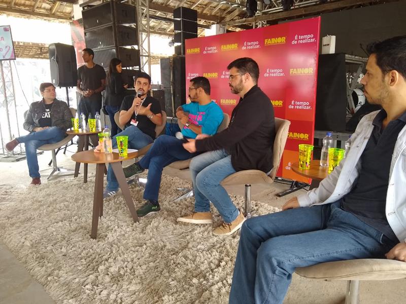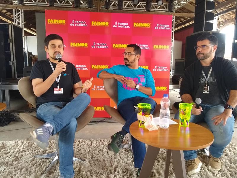 Também participaram do bate-papo os professores da FAINOR Yure Lopes e Ramon Araújo Santos. Discutir a Logística do Entretenimento foi uma ação planejada para o Festival, já que o ambiente favorece intensamente o entendimento sobre organização de equipamentos, estruturas, equipes, artistas, transporte, alimentação e hospedagem – tudo se encaixando perfeitamente, para que o público tenha a melhor experiência possível do espetáculo.