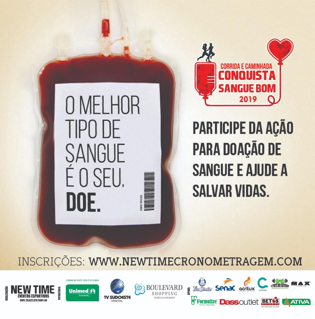Inscrições para a corrida e caminhada através do site: www.newtimecronometragem.com
