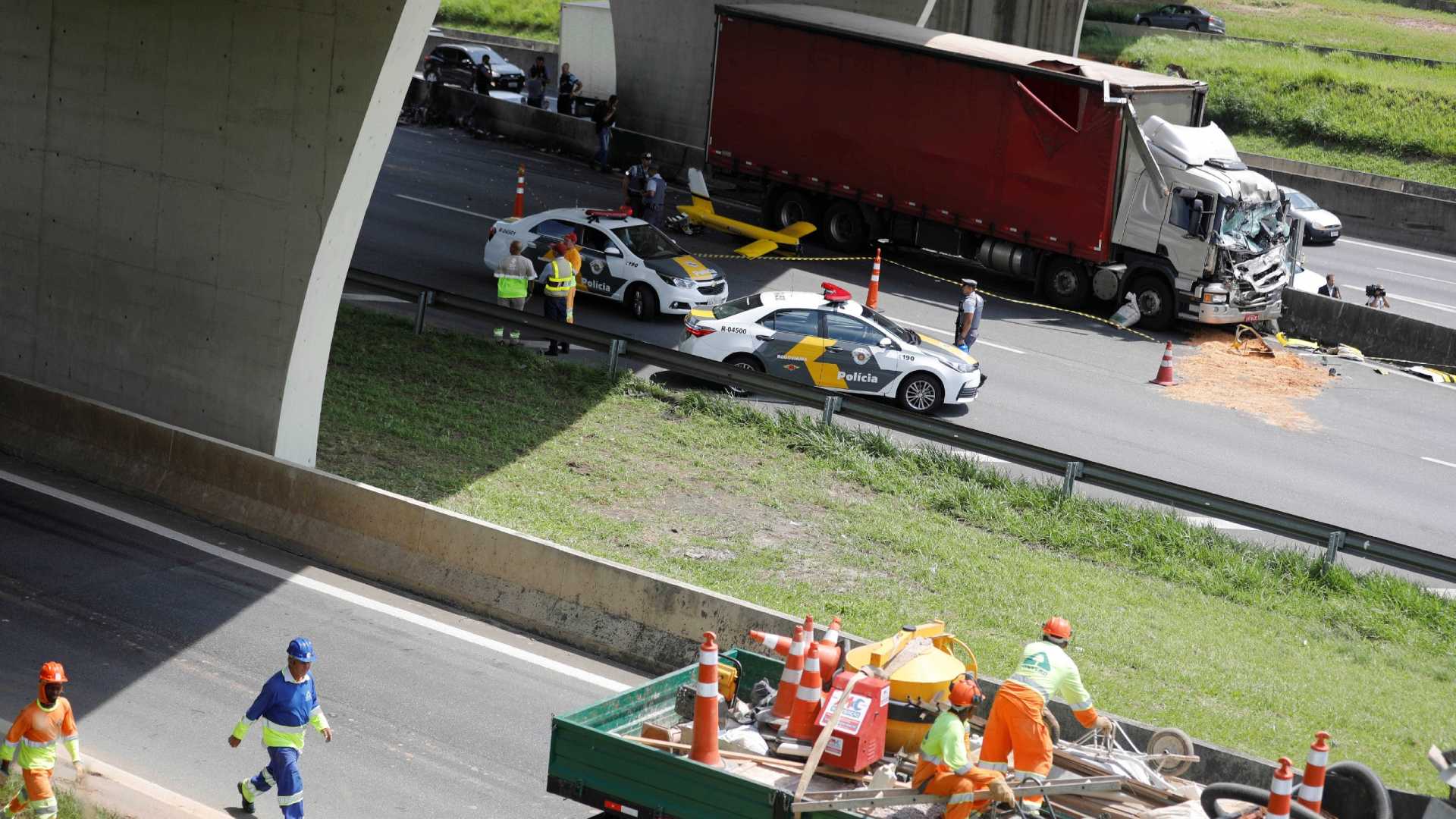 O chamado de socorro foi feito às 12h14. A queda ocorreu perto do quilômetro 7 do Rodoanel, sentido Castelo Branco. De acordo com a CCR Rodoanel Oeste, que administra o Rodoanel, houve uma terceira vítima com ferimentos, o motorista do caminhão.