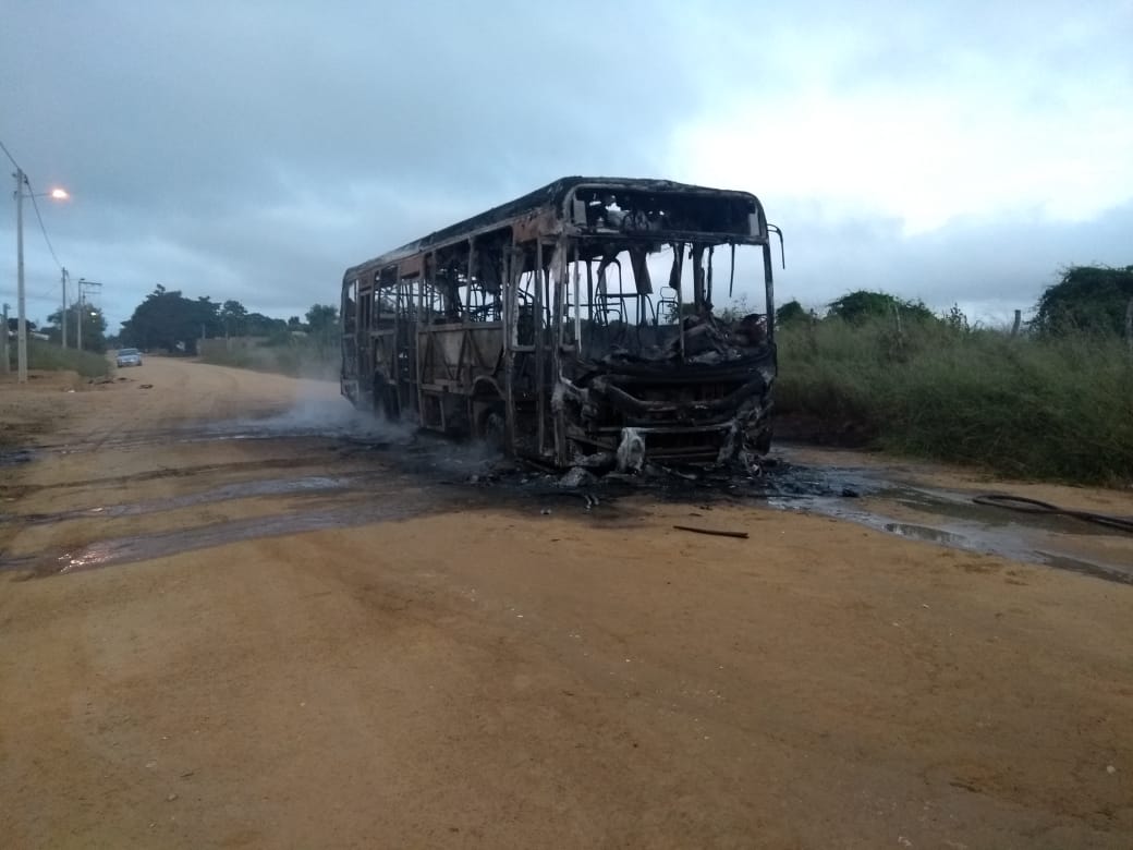Um ônibus da Viação Cidade Verde foi tomado pelas chamas e ficou destruído no início da manhã desta segunda-feira (04) no Bairro Vila Elisa.
