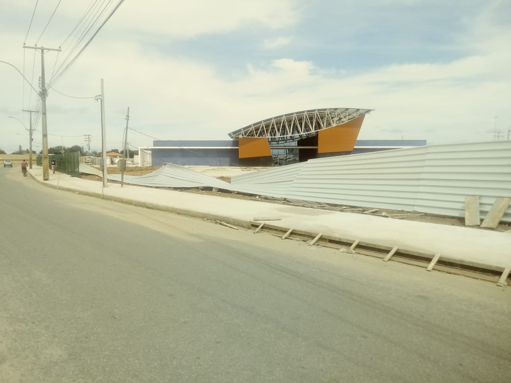 Raios e trovões também caíram em grande intensidade e assustaram as pessoas. A chuva também atingiu as obras da Policlínica e derrubou o gradil da obra.