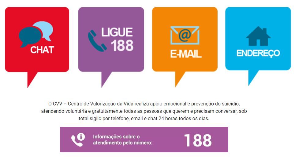 Passou a atender à Bahia no último domingo (1º), o Centro de Valorização da Vida (CVV), um órgão sem fins lucrativos que presta apoio como prevenção ao suicídio. Para o estado, as ligações são gratuitas através do 188 e o serviço funciona 24h, todos os dias da semana.