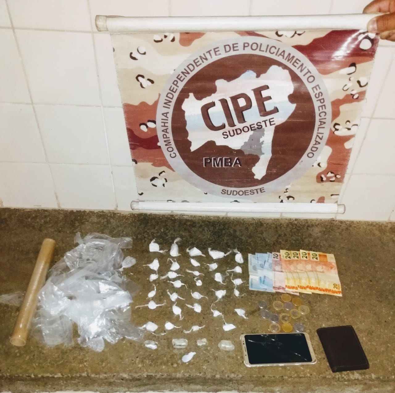 Uma guarnição da Caesg em rondas táticas na cidade de Macarani, após denúncia de tráfico de drogas na rua Dionísio Ribeiro, deslocou até a referida localidade, onde uma mulher após visualizar a aproximação da equipe policial, dispensou uma substância no passeio de casa e entrou rapidamente para o interior de uma residência. A GU rapidamente a alcançou e identificou o material ilícito dispensado, tratando-se de substância analógica a cocaína. Foi encontrado tbm no interior do imóvel, mais um quantidade da mesma substância.