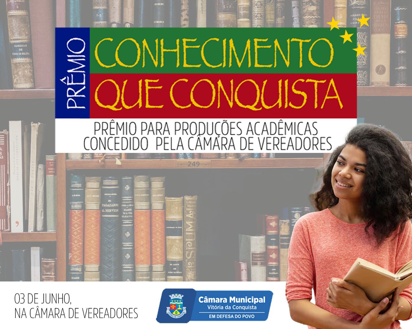 A Câmara Municipal de Vitória da Conquista abriu oficialmente as inscrições para a segunda edição do Prêmio Conhecimento que Conquista – edição 2026. A iniciativa, instituída pela Resolução nº 78, de 07 de junho de 2022, tem como objetivo reconhecer e valorizar produções acadêmicas que se dedicam ao estudo da realidade do município.