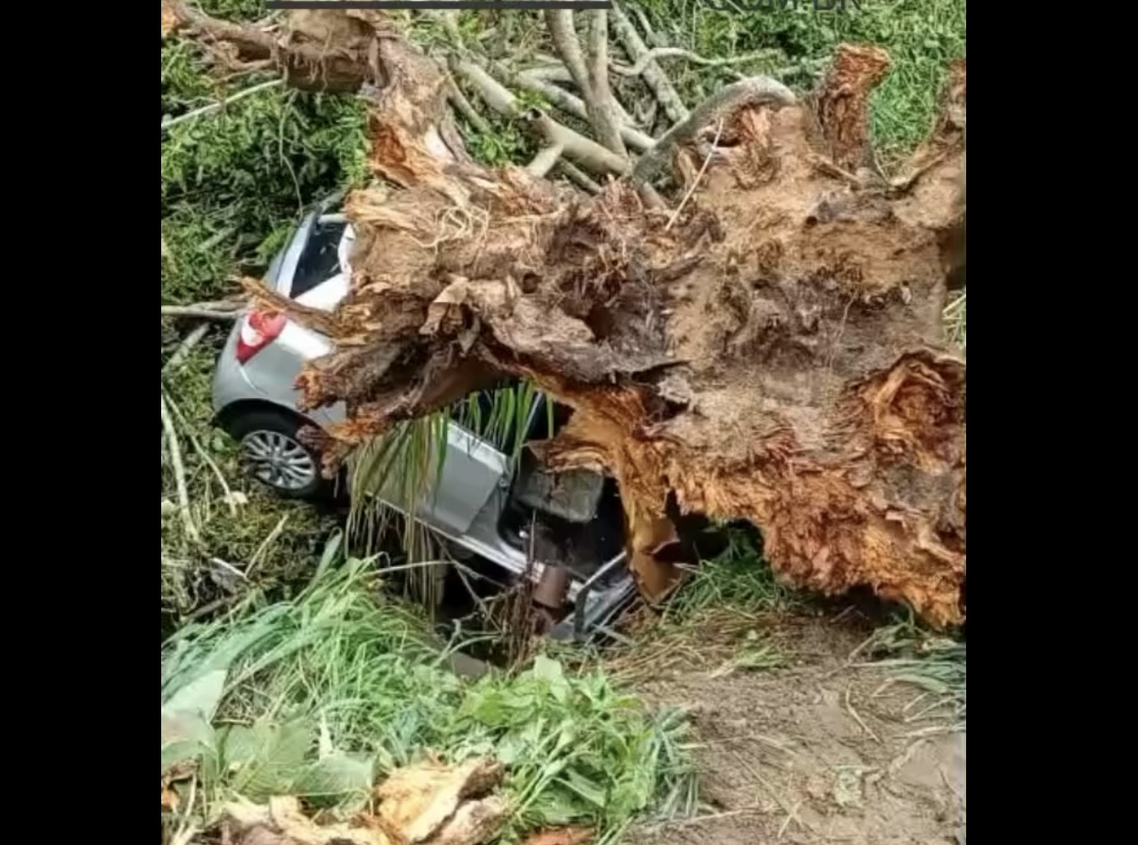 Durante a cobertura, nossa equipe encontrou o veículo que foi arrastado pela força da água após o motorista, por um descuido, não acionar o freio de mão.