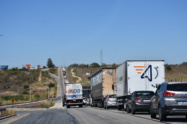O congestionamento ocorre em consequência de uma obra do DENIT [Departamento Nacional de Infraestrutura de Transportes] que está operando no sistema pare e siga. Até o momento não há previsão de quando a obra será concluída.