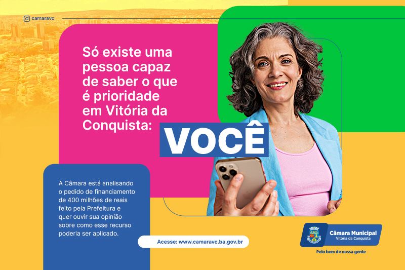 Durante a sessão ordinária desta quarta-feira (03), o presidente da Câmara Municipal de Vitória da Conquista, vereador Ivan Cordeiro, anunciou oficialmente a abertura de uma Consulta Pública que permitirá aos cidadãos opinarem sobre o destino dos recursos do Finisa 4, caso o empréstimo de R$ 400 milhões seja aprovado pelo Legislativo.