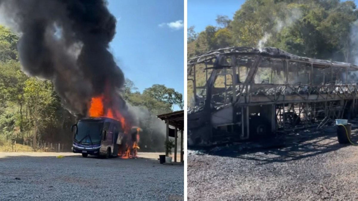 Um incêndio destruiu completamente o ônibus utilizado pelas bandas Djavú e Bonde do Forró neste sábado (26), em Minas Gerais.