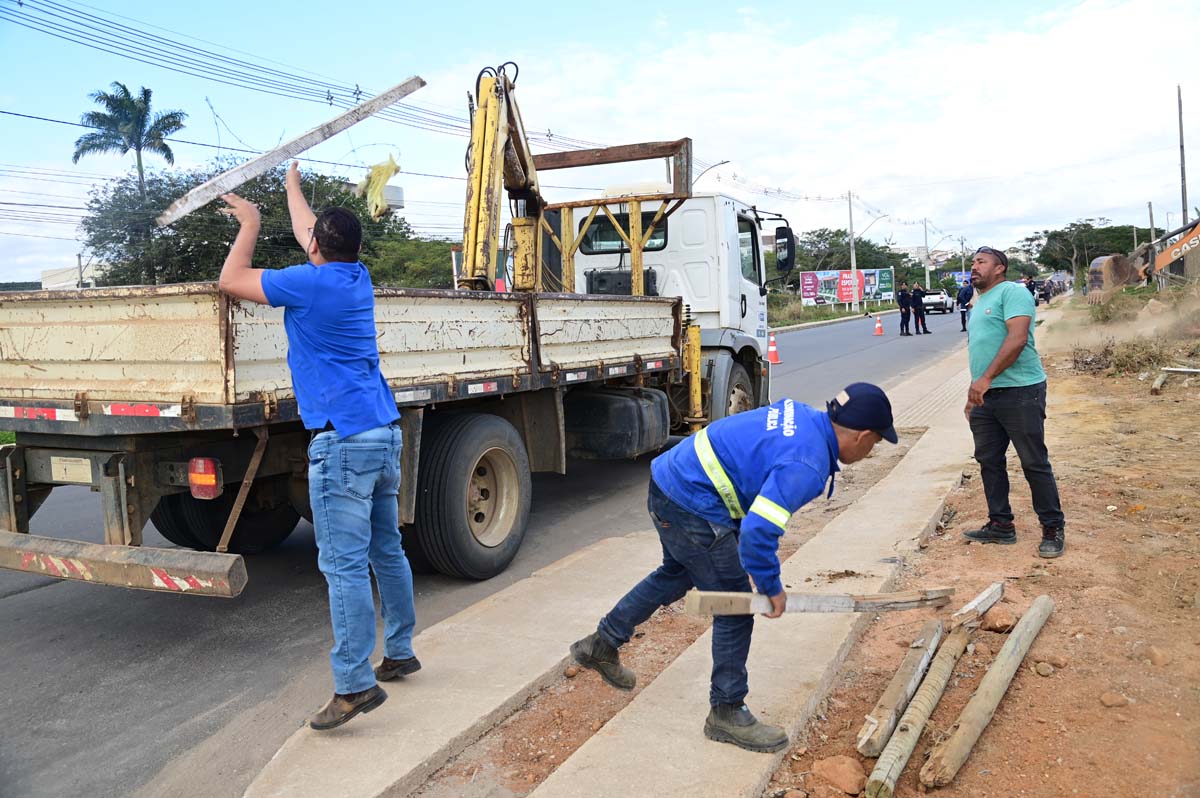 A abordagem realizada hoje diz respeito à remoção de objetos que cercavam os terrenos ocupados de forma irregular, como tapumes, toras de madeiras, arames, entre outros. O material foi recolhido e encaminhado para a Central de Equipamentos (Deserg), de onde poderá ser retirado pelos proprietários. Não houve qualquer tipo de intervenção nas edificações que existem no local.