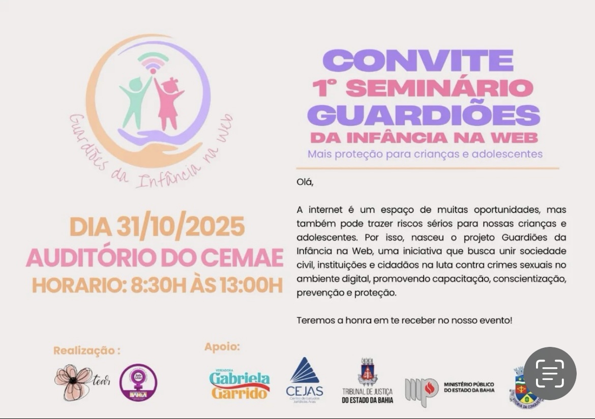 Com esse propósito, o Instituto Tear – Trabalhar, Esperançar, Acolher e Realizar promove, nesta sexta-feira, 31 de outubro, às 8h30, no auditório do CEMAE, o Seminário “Guardiões da Infância na Web”, um encontro voltado à proteção de crianças e adolescentes no ambiente digital.