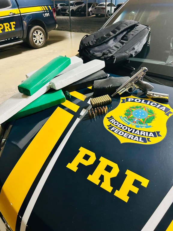 Na tarde deste domingo (25), por volta das 17h, a Polícia Rodoviária Federal (PRF) apreendeu cerca de 11,1 kg de drogas, além de uma arma de fogo e diversas munições, durante fiscalização de um ônibus de turismo no km 830 da BR-116, em Vitória da Conquista (BA).