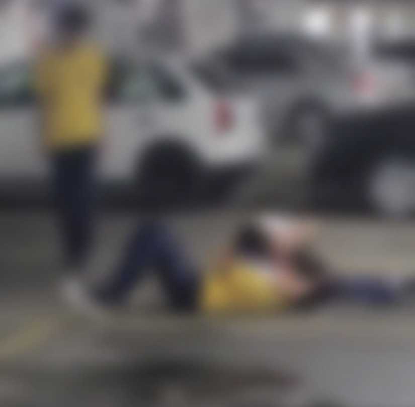 No local, dois adolescentes parecem começar a discutir enquanto estão cercados por colegas. Na sequência, um parte para cima do outro e as agressões físicas começam.