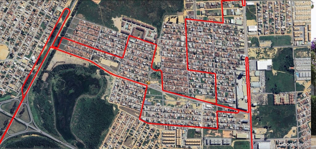 Após o Atacadão, segue direto pela Avenida Perimetral até a Rua N, e para o Residencial Riverside. Em seguida, fará o itinerário pela Rua Ademário da Rocha Ribeiro, mantendo assim o roteiro pontual.