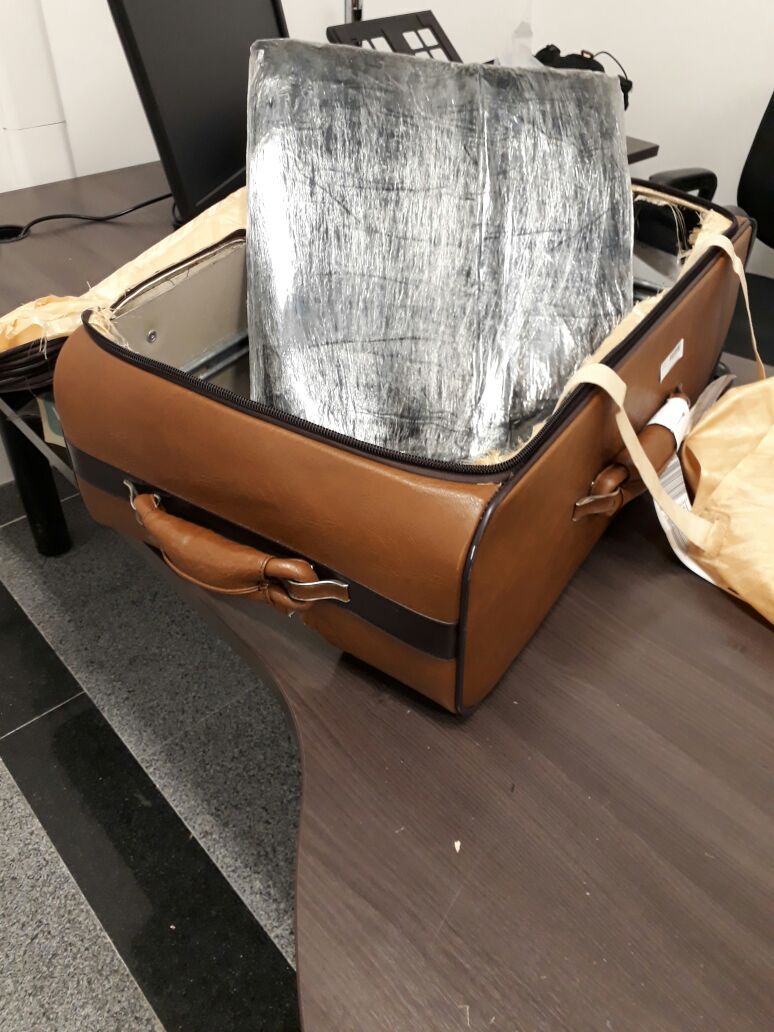 A droga foi encontrada durante o procedimento de inspeção de bagagens com o aparelho de raio-x, escondidas em fundos falsos, em duas das malas do casal. Na Europa, o entorpecente valeria cerca de R$ 800.000,00 (Oitocentos mil reais), devido ao seu alto grau de pureza.