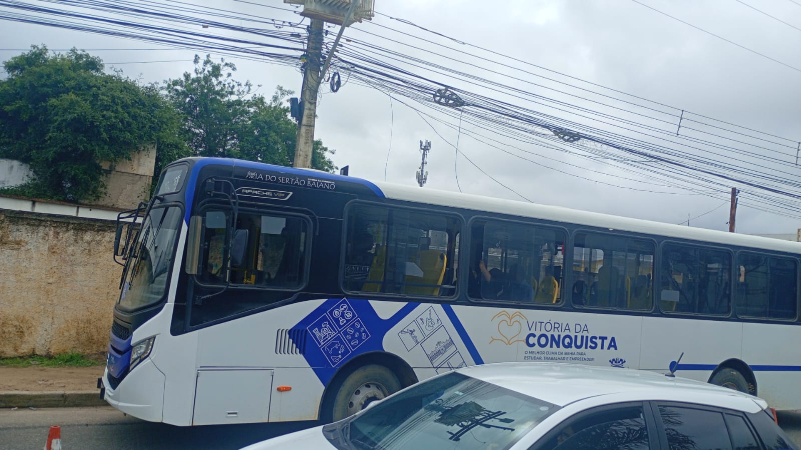 A Polícia Militar está no local registrando a ocorrência.