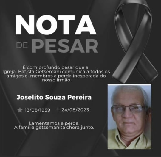 É com muito pesar que o Blog do Redação comunica o falecimento de Joselito Souza Pereira, aos 64 anos. Ele faleceu após ser submetido a um procedimento cirúrgico no hospital São Vicente, em Vitória da Conquista.