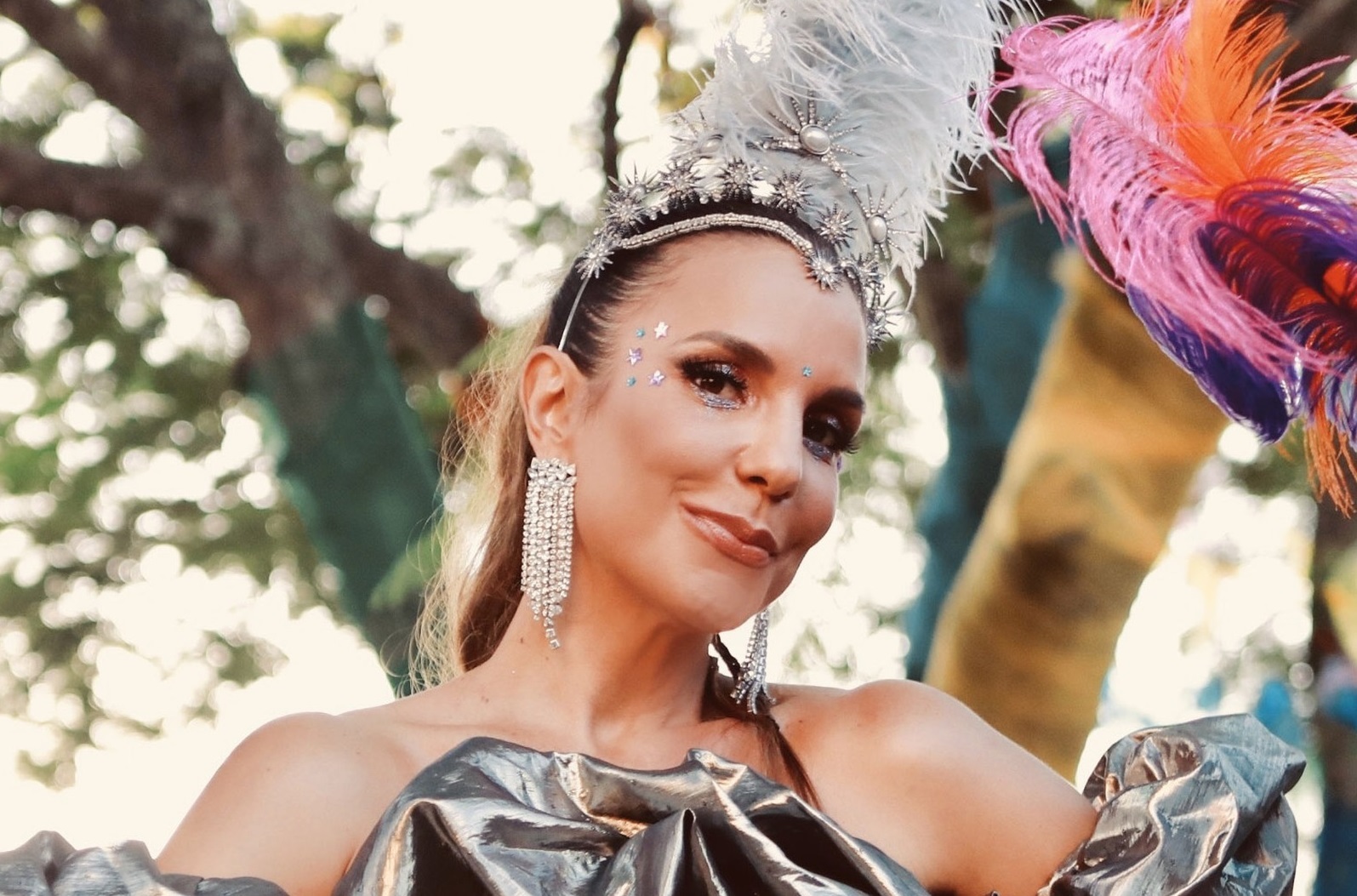 Por volta das 15h, Ivete surgiu no palco do trio Barretão - o mesmo dos três dias de bloco Coruja, na Barra - vestindo um figurino azul e dourado. "Alma Lavada: A Rainha Arqueira, forte e guerreira": essa é a fantasia de 'Veveta' para animar os foliões no "Reino de Mainha", tema da folia para a cantora este ano.