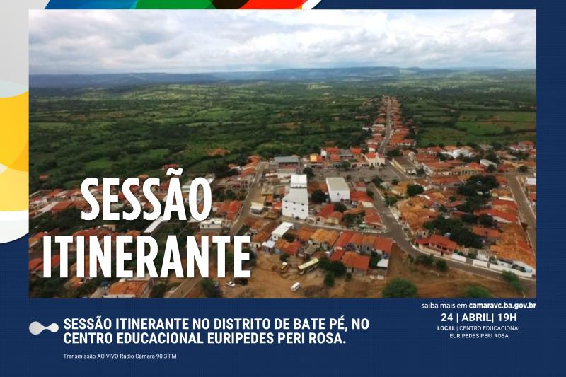 Nesta quarta-feira, 24, a Câmara Municipal de Vitória da Conquista realiza Sessão Itinerante no Distrito de Bate Pé às 19h. A sessão será realizada no Centro Educacional Eurípedes Peri Rosa, sendo aberta à população.
