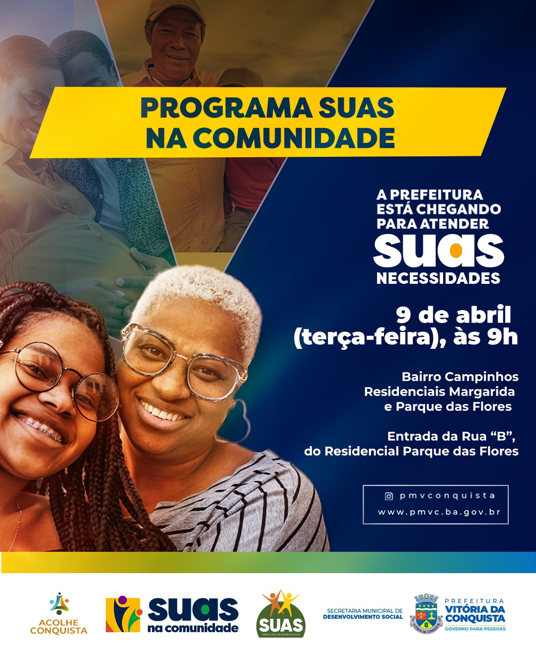 Nesta terça-feira (9), os moradores dos residenciais Margarida e Parque das Flores, localizados no bairro Campinhos, recebem a 12ª edição do Suas na Comunidade, programa do Governo Municipal que leva serviços da Assistência Social a quem mais precisa. A ação acontece das 9h às 14h, na entrada da Rua B, do Residencial Parque das Flores.
