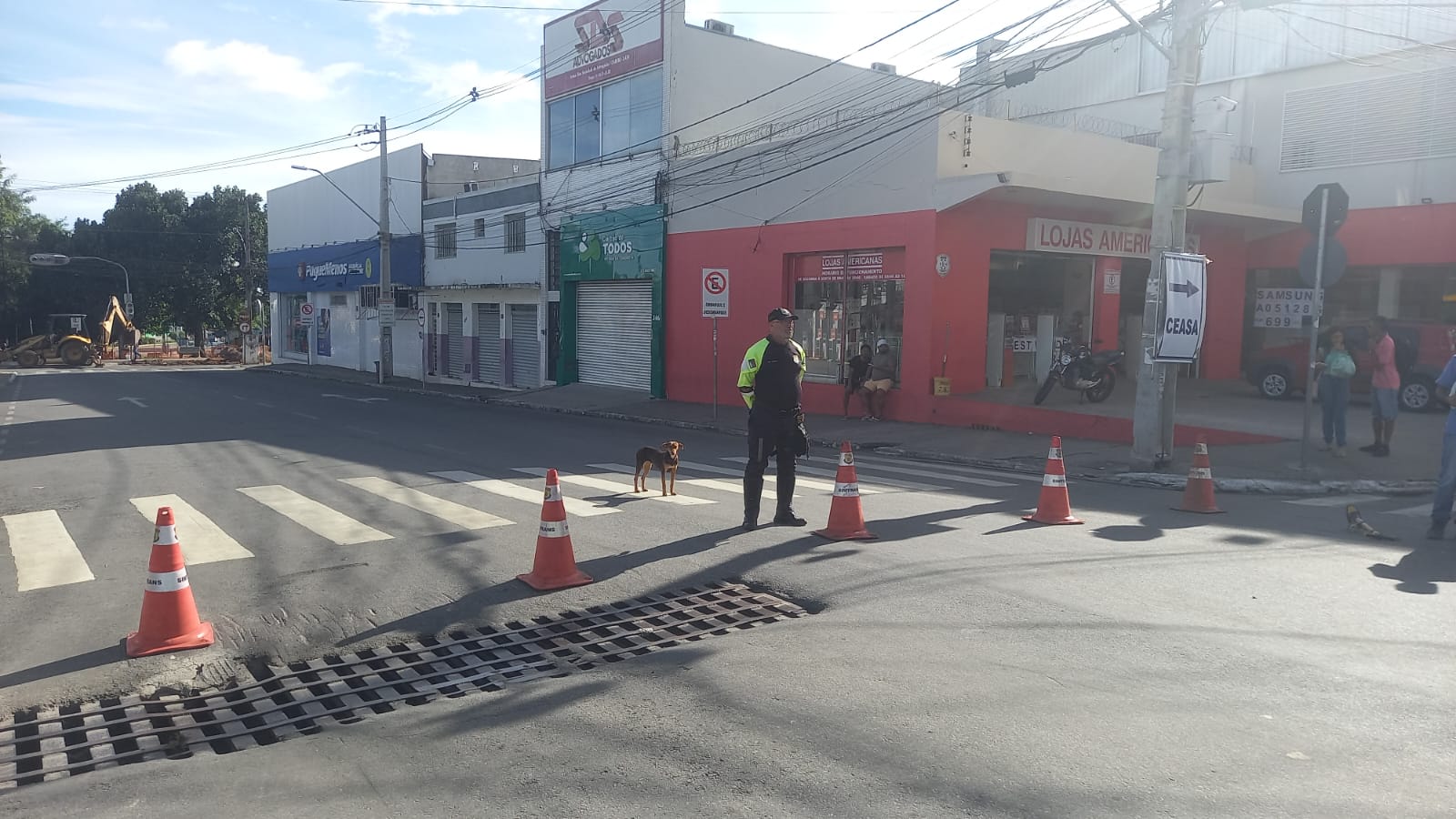 Os agentes de trânsito estão no local orientando os condutores de veículos sobre as mudanças temporárias.