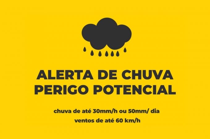 De acordo com o Inmet, o primeiro alerta começou nesta quinta-feira (8) e termina amanhã (9). Mas, outro alerta, já divulgado pelo instituto, ficará válido desta sexta-feira (9) até o próximo domingo (11), com possibilidade de chuva entre 20 e 30 mm/h ou até 50 mm/dia, e ventos intensos (40-60 km/h). Há baixo risco de corte de energia elétrica, queda de galhos de árvores, alagamentos e de descargas elétricas.