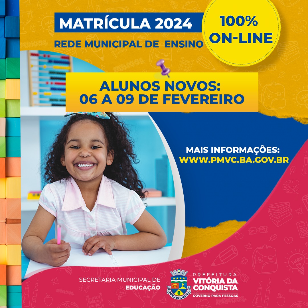 Acontece de terça (6) até sexta-feira (9), as matrículas para os alunos de fora, ou seja, aqueles que ainda não estão estudando em alguma escola da rede municipal de ensino de Vitória da Conquista. Como ocorreu nas demais etapas, as matrículas serão realizadas de forma on-line para todas séries, ou seja: Educação Infantil, Fundamental I e II, e Educação de Jovens e Adultos (EJA).