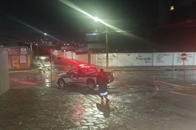 O Simtrans realizou o bloqueio da Rua Lourival Cairo, que passa por obra na rede de esgoto, e o bloqueio parcial no cruzamento das avenidas Expedicionários e Guilhermino Novais, que recebeu o material da obra, após as fortes chuvas que atingiram a cidade neste domingo (1°).