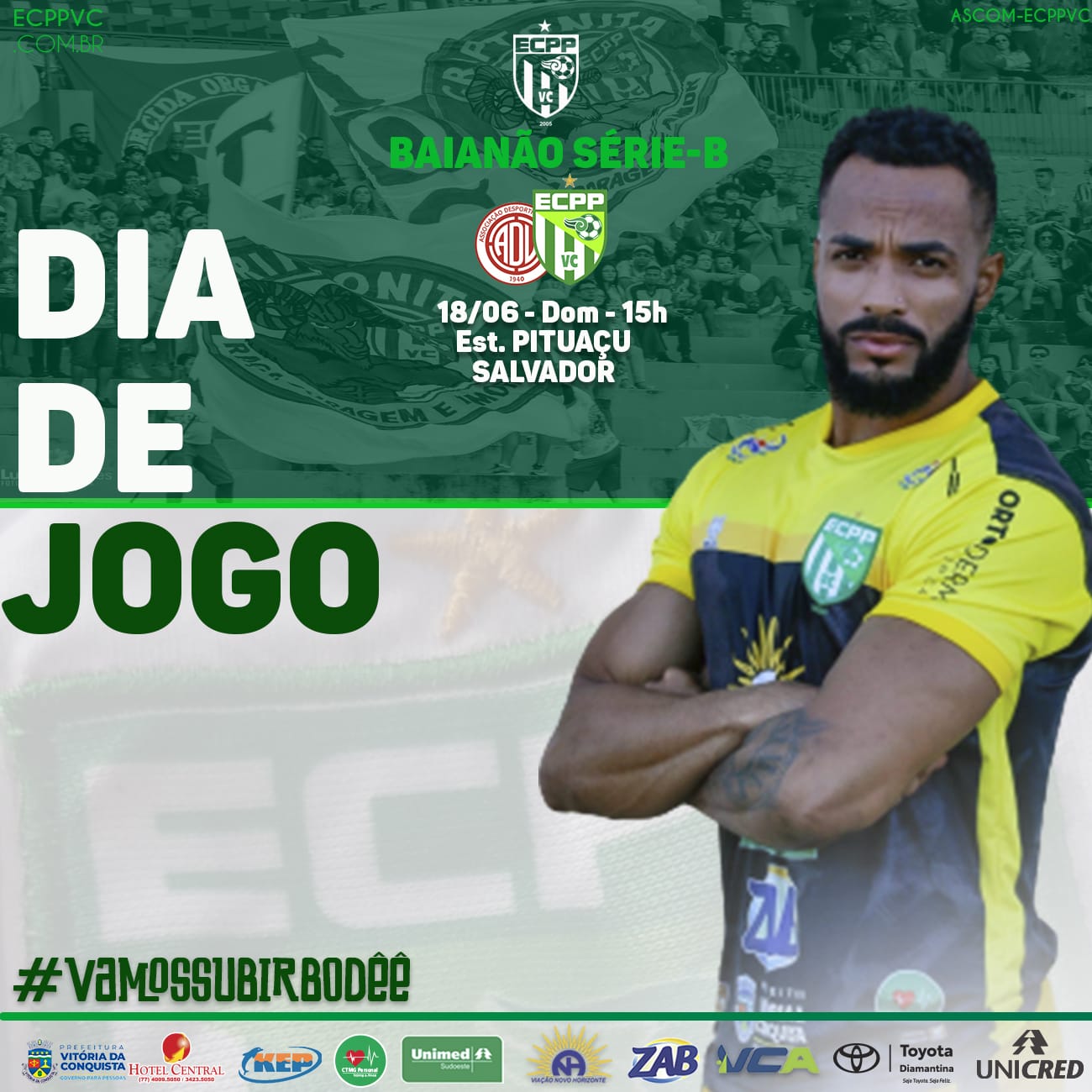 Pela sexta rodada do Campeonato Baiano, o ECPP-VC enfrentará a equipe do Leônico, às 15h, no Estádio Pituaçu. Vamos torcer para a vitória do nosso querido Alviverde.