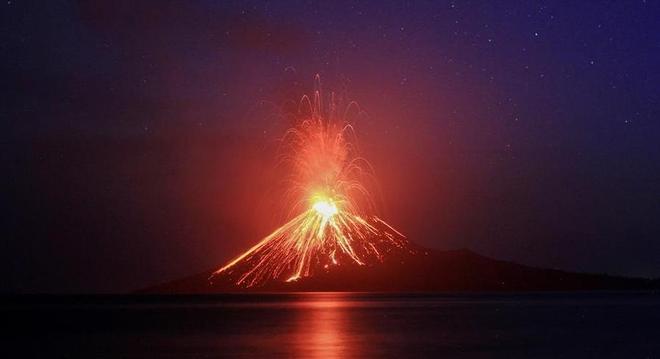 Anak Krakatoa é uma pequena ilha vulcânica que surgiu no oceano meio século depois da letal erupção do vulcão Krakatoa em 1883. É um dos 127 vulcões ativos da Indonésia.